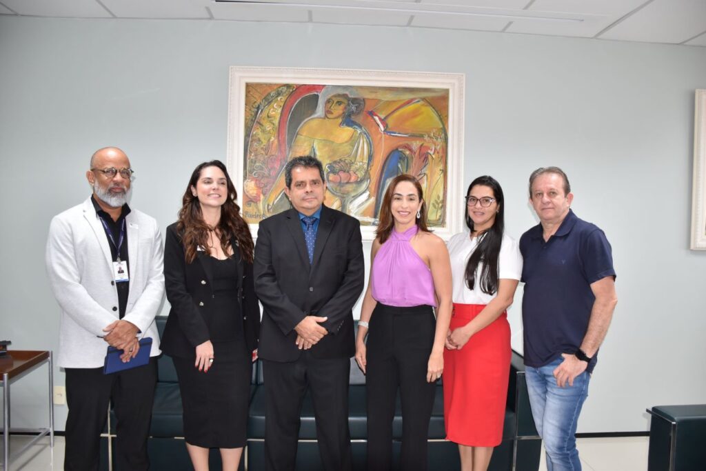Participaram da reunião o secretário de Fiscalização do TCE, Fábio Alex de Melo; a coordenadora da Escola de Gestão Municipal da Famem, Renata Coqueiro; e a chefe de gabinete da Famem, Auriceia Castelo.