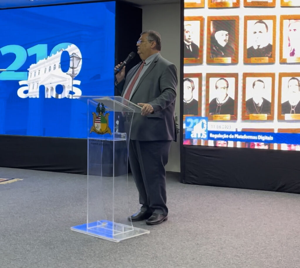Na ocasião, o ministro da Justiça, Flávio Dino, ministrou palestra sobre o tema Regulação das Plataformas Digitais.