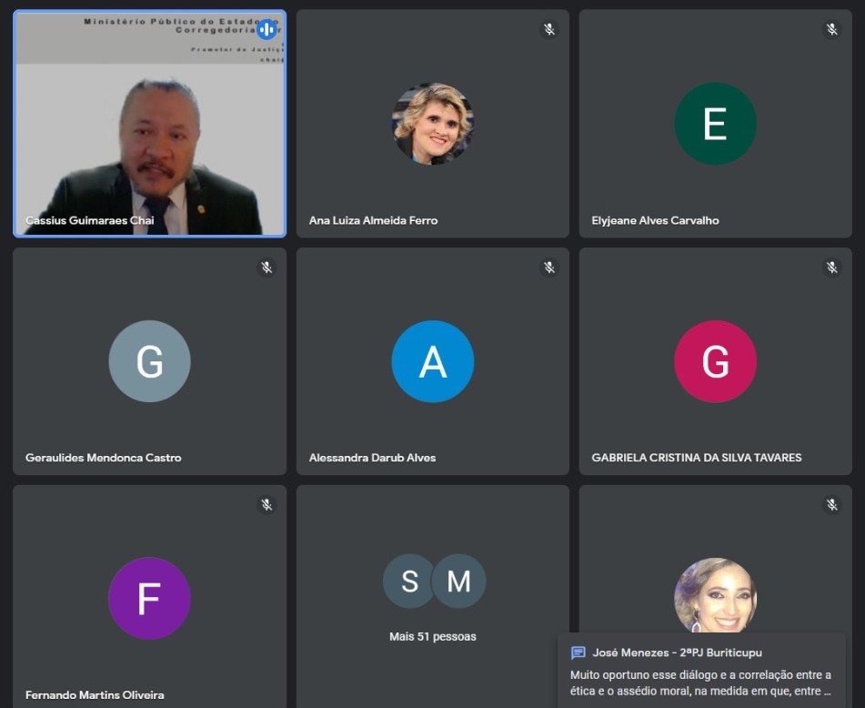 O Ministério Público do Maranhão, por meio da Corregedoria-geral, em parceria com a Escola Superior, promoveu, na última quarta-feira, 28, a palestra “Ética e gestão estratégica do MP” e “Interação e humanização na era da informação”. Ministrada pelo promotor de justiça corregedor Cássius Guimarães Chai, a palestra, voltada para membros, servidores e estagiários do MPMA, foi realizada de forma virtual.