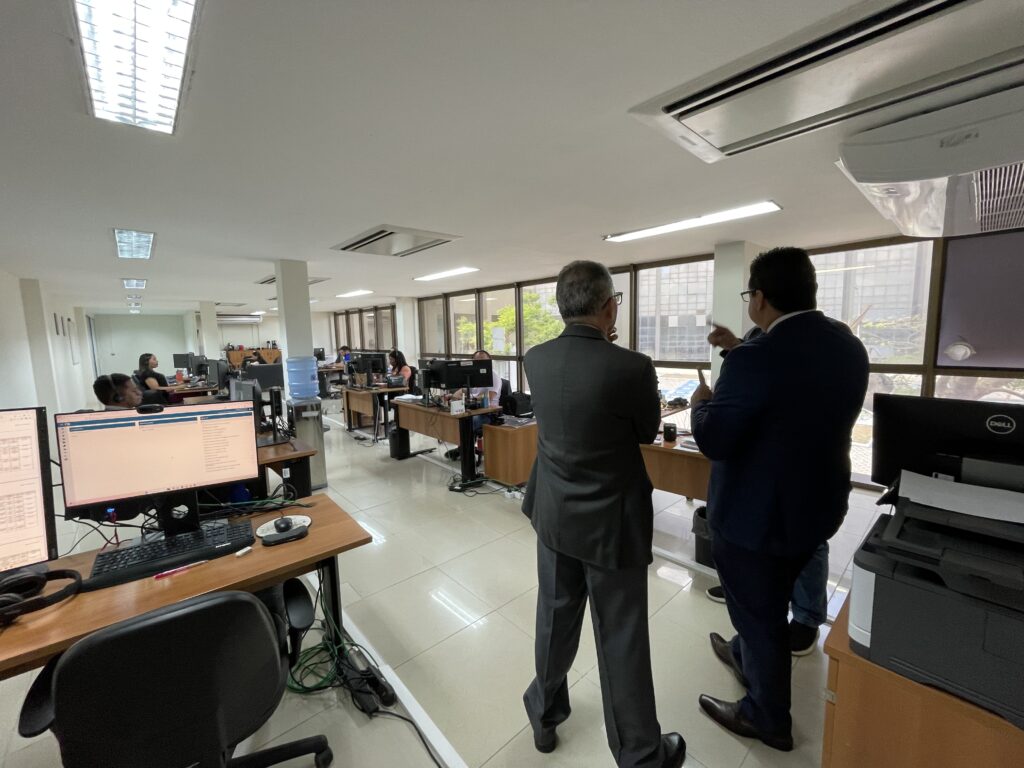 Após a visita à sede do Nupemec, no Palácio da Justiça Clóvis Bevilácqua, no Centro da capital, Rodrigo Nina e Vicente Martins foram à sede da Cejusc Virtual, no Fórum José Sarney, no Jaracati. Na Central, há dez conciliadores para o atendimento de demandas exclusivamente por videoconferência.