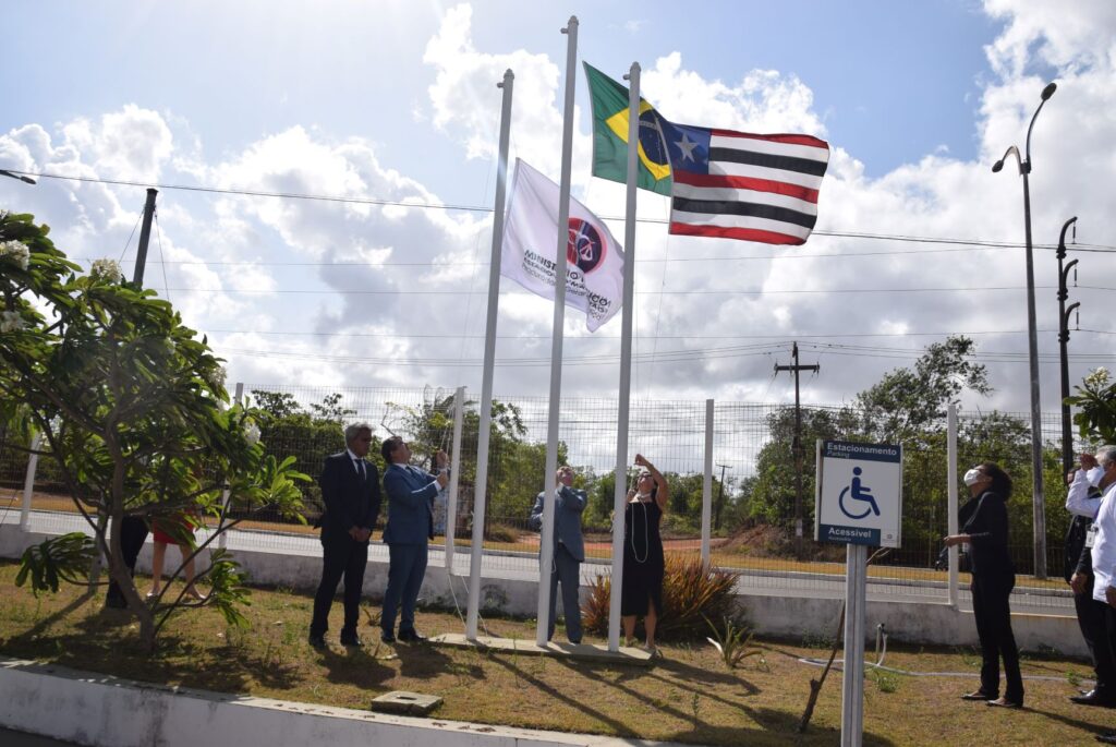 Em seguida, houve o hasteamento das bandeiras do Brasil, do Maranhão e do Ministério Público, feito pelo procurador-geral de justiça, pela corregedora-geral do MPMA, Themis Pacheco de Carvalho, e pelo presidente e vice-presidente da Associação do Ministério Público do Estado do Maranhão (Ampem), Gilberto Câmara França Júnior e Reinaldo Campos Castro Júnior.