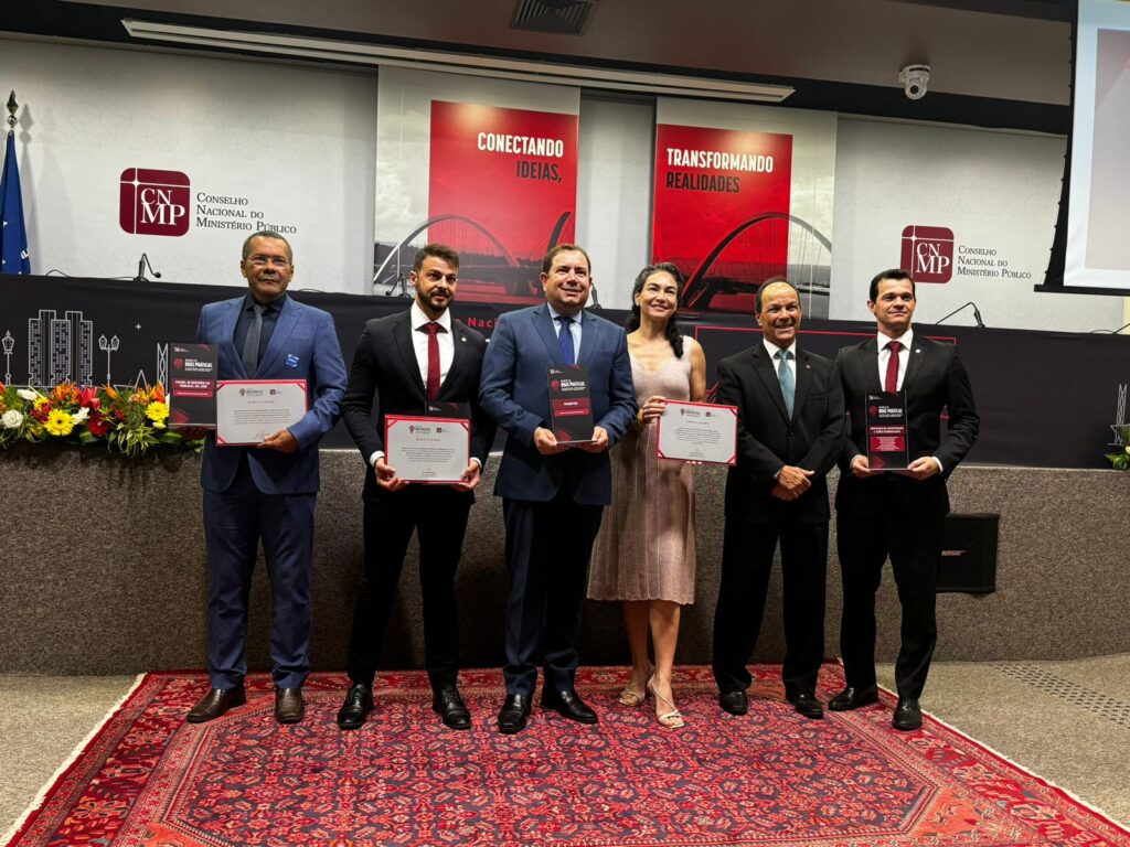 A cerimônia de entrega dos troféus e certificados foi realizada na última sexta-feira, 22, durante o encerramento do Encontro Nacional do Ministério Público no Sistema Prisional, Controle Externo da Atividade Policial e Segurança Pública, realizado no Auditório do Conselho Nacional do Ministério Público, em Brasília. O promotor de justiça Pedro Lino da Silva Curvelo, integrante da Corregedoria-Geral do MPMA, recebeu o troféu em nome do promotor de justiça Sandro Lobato, coordenador do CAO-Júri.