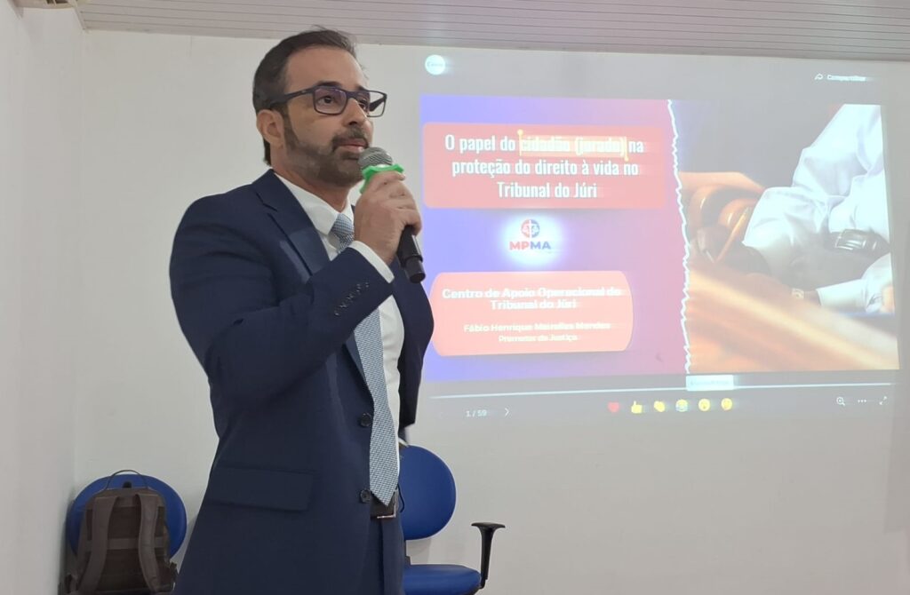 O promotor de justiça Fábio Henrique Meirelles Mendes, integrante do Centro de Apoio Operacional do Tribunal do Júri (CAO Júri), proferiu palestra com o tema “O papel do cidadão (jurado) na proteção do direito à vida no Tribunal do Júri”. Entre outros itens, tratou da definição, da composição e dos crimes julgados pelo Tribunal do Júri, bem como das pessoas que podem atuar como jurado. “Da lista de jurados elaborada a cada ano pelo juízo da comarca, são escolhidos 25 por sorteio, que participarão de cada julgamento. Destes, durante a sessão do Tribunal do Júri, sete irão efetivamente compor o Conselho de Sentença para julgar o réu”, acrescentou.