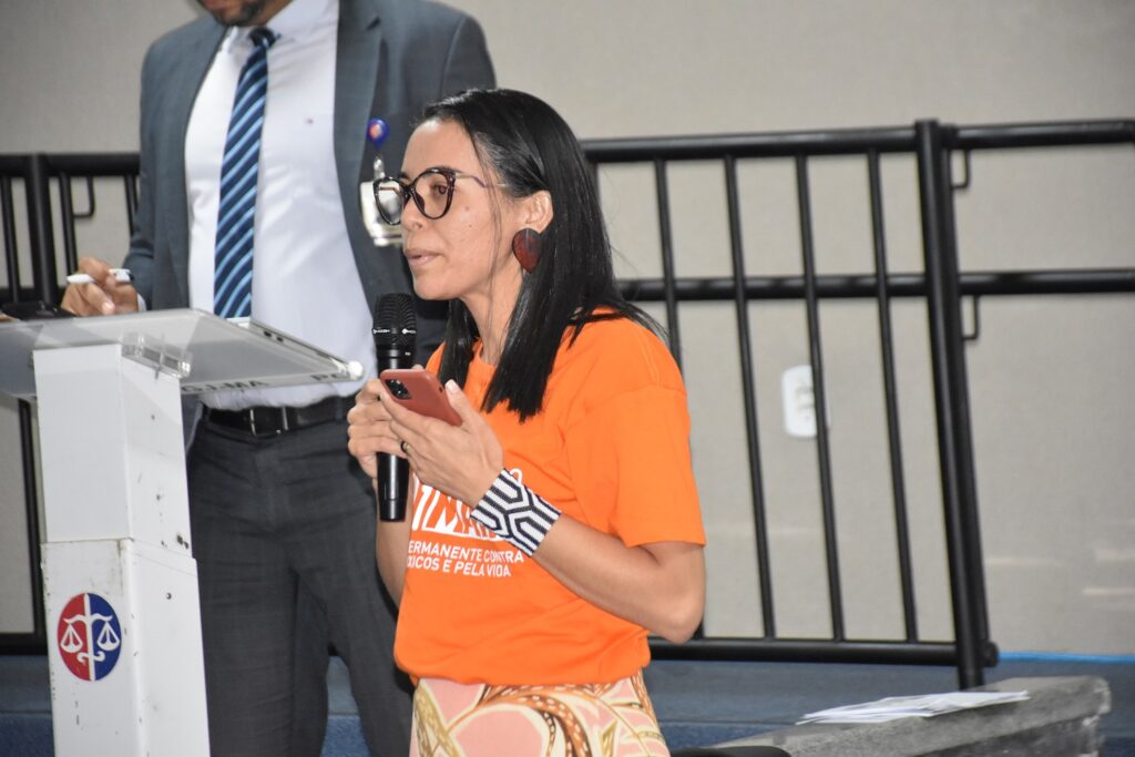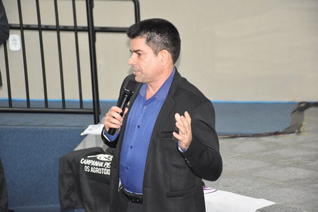Em seguida, o titular da 1ª Promotoria de Justiça de Defesa do Meio Ambiente, Luís Fernando Cabral Barreto Júnior, agradeceu os presentes na audiência pela luta em defesa da biodiversidade e combate aos abusos do agronegócio. “O ideal seria um mundo sem agrotóxico, mas nós não temos esse mundo ainda. Mas mesmo nesse mundo existem limites, muitas vezes não respeitados. A dispersão da embalagem de agrotóxico, a reutilização, a entrega a terceiros, tudo isso são problemas que vão afetando os trabalhadores rurais”, pontuou.