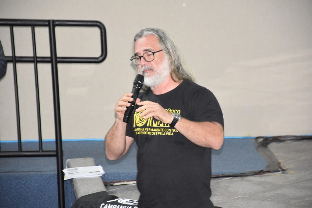 O líder comunitário Valdivino Silva é do território quilombola São Benedito dos Colocados, em Codó. “Nós estamos discutindo aqui mecanismos que possam nos ajudar a nos defender da morte dos venenos. Eu sou de um território quilombola que já está cercado pelas grandes monoculturas e pelo avanço do agronegócio que só pensa em lucro. Não se pensa em gente de jeito nenhum. Só se lembram do dólar. Muitas vezes nossos governos são culpados porque não olham para o povo pobre como gente”, desabafou.