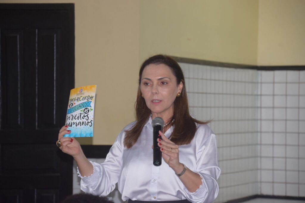 Cristiane Lago destacou a necessidade de que os estudantes busquem a informação para ter conhecimento dos direitos humanos e não reproduzam mensagens equivocadas a respeito do tema, como as que dizem que “direitos humanos só servem para proteger bandidos”.
