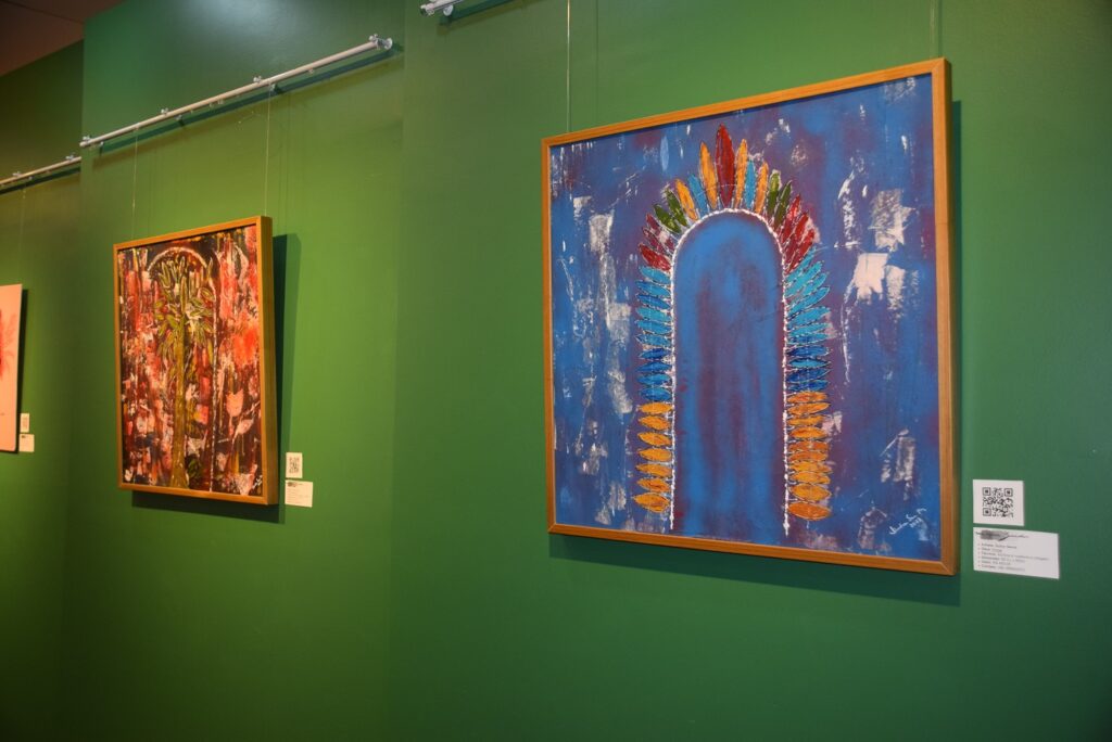 A coordenadora do Centro Cultural do MPMA, Dulce Serra, participa com duas telas intituladas “Portal” e “Imaginários”, ambas na técnica acrílica sobre madeira e colagem.