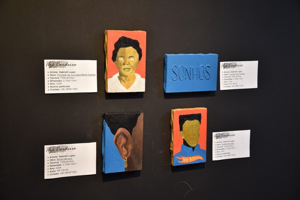Em cartaz no Espaço de Artes Ilzé Cordeiro, no Centro Cultural do Ministério Público do Maranhão, a exposição “Um jardim para cada espinho” apresenta telas do artista visual Gabriell Lopez, 19, uma revelação das artes do Maranhão. A mostra, aberta nesta quarta-feira, 6, é composta de 18 pequenos quadros figurativos e coloridos, pintados com tinta acrílica, que reverenciam a identidade negra, por meio de elegantes rostos, quase sempre com olhos vazados (tal qual as máscaras africanas que inspiraram as faces das pinturas de Modigliani), e representações de orixás.