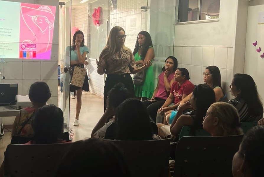 Glória Mafra abordou, ainda, os direitos da mulher com diagnóstico de câncer de mama, os fatores de risco, a exemplo de idade e gênero, histórico familiar e exposição hormonal. Ela também alertou sobre os sintomas a serem observados pelas mulheres: nódulos, mudanças na pele, saída de secreção, inchaço ou dor nos seios.