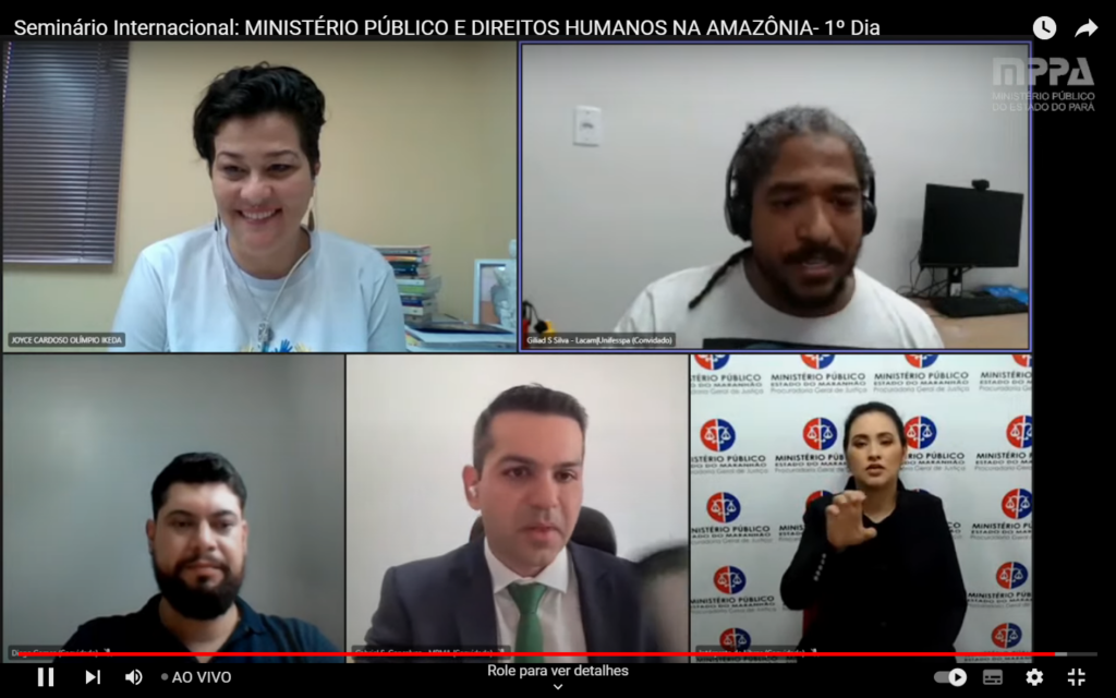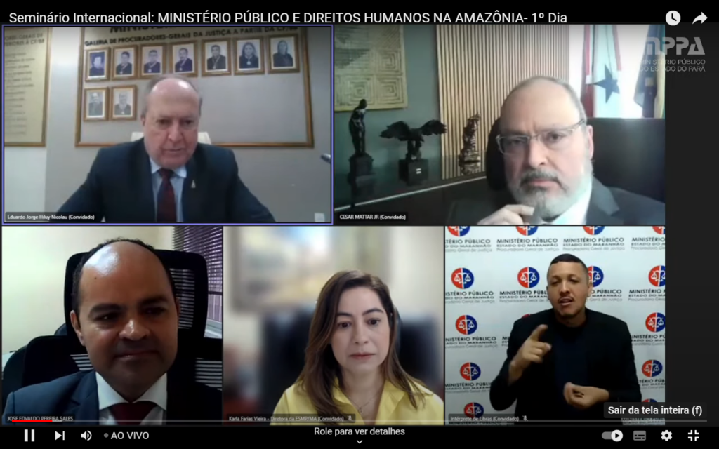 Realizado de forma digital, foi iniciado na manhã desta quinta-feira, 4, o Seminário Internacional “Ministério Público e Direitos Humanos na Amazônia”, uma parceria do Ministério Público do Maranhão, por meio de sua Escola Superior, e o Centro de Estudos e Aperfeiçoamento Funcional (CEAF), do Ministério Público do Pará. A transmissão está sendo feita no canal do CEAF no Youtube (https://www.youtube.com/watch?v=A_ar2zdVLFw).